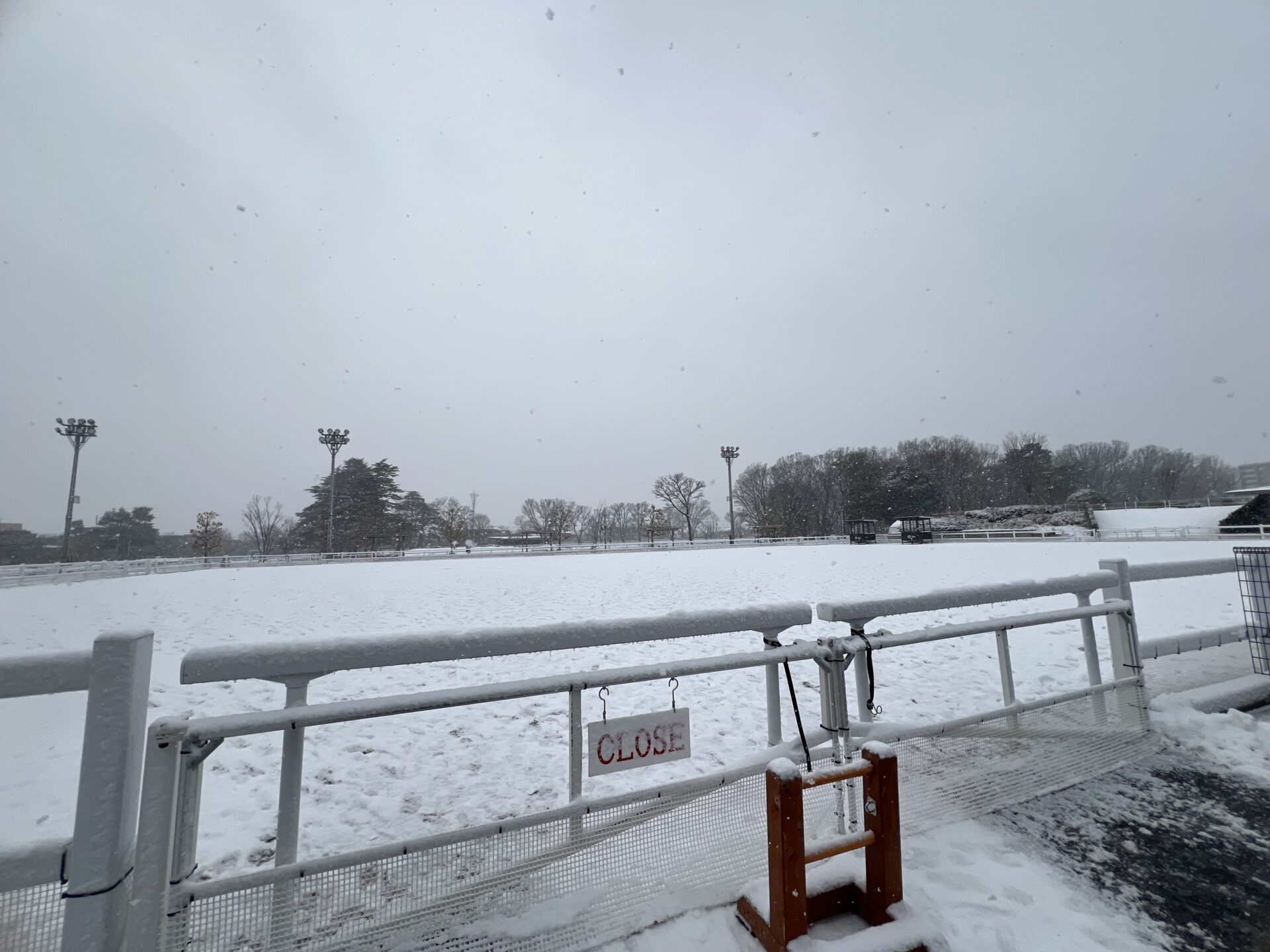 こんにちは!恩方ステーブルの大岩です! 2月6日から8日まで東京都世田谷区にありますJRA馬事公苑にてスクーリングドレッサージュが開催されました🐴恩方ステーブルから7頭、タマヒルズステーブルから2頭での参加となりました! 今シーズン初めての試合となりましたが大寒波の影響で土曜日から雪☃️が降り、日曜日は積雪の影響で中止となってしまいました… ……