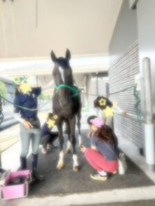 アドマイヤハレー号 受講生の皆さんにキレイにしてもらう。