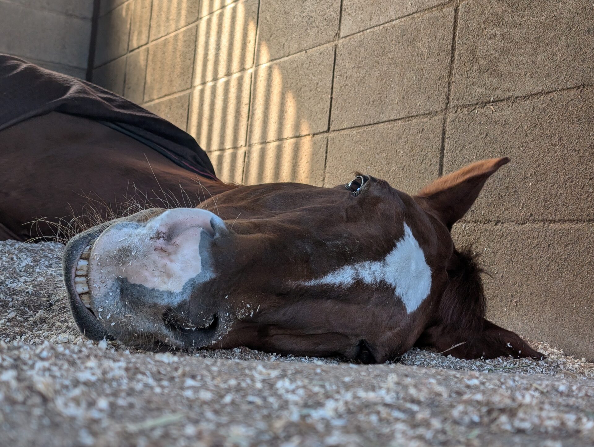 自分が綺麗にした馬房で、たまらなく可愛い顔をして横になっている馬たちを見ると、何とも言えない幸福と達成感を感じます。