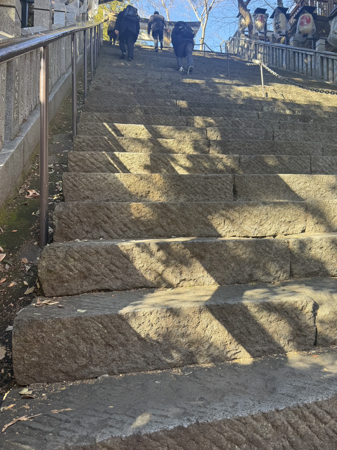 上を見るのも下を振り返るのもなかなかの恐怖を覚える急な石段。