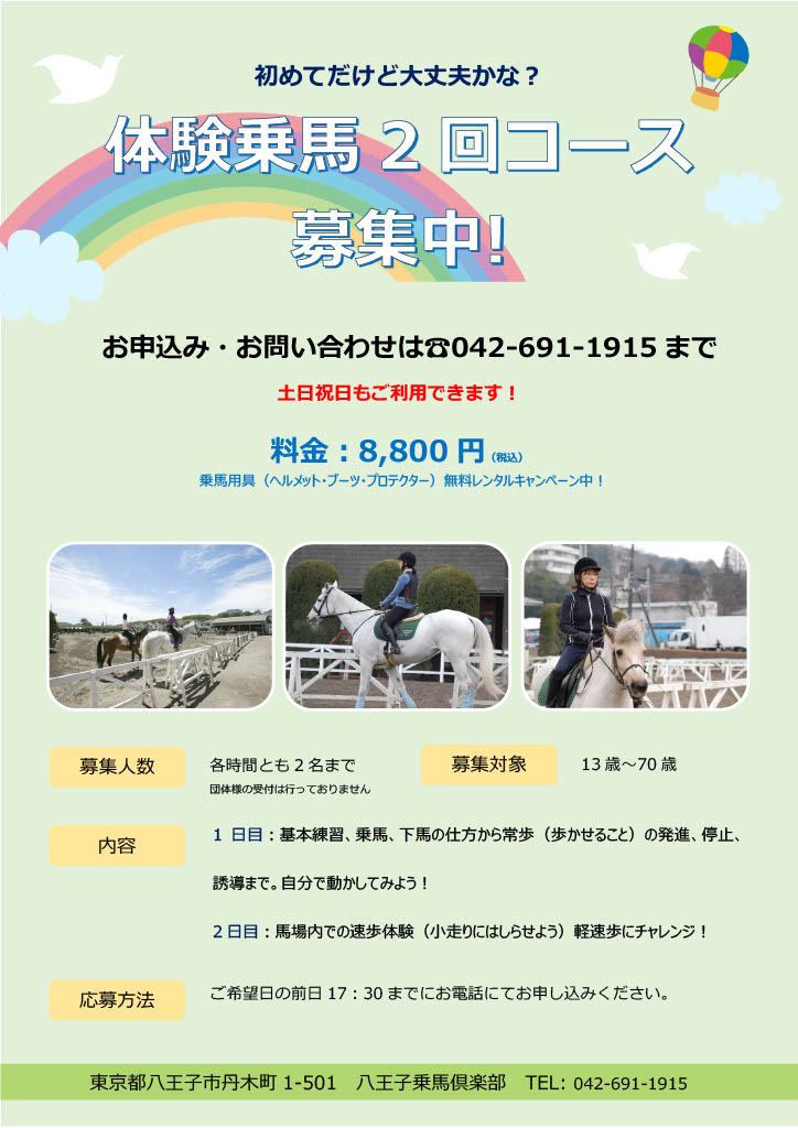 馬に乗ってみたい!!初めての体験乗馬募集中!!