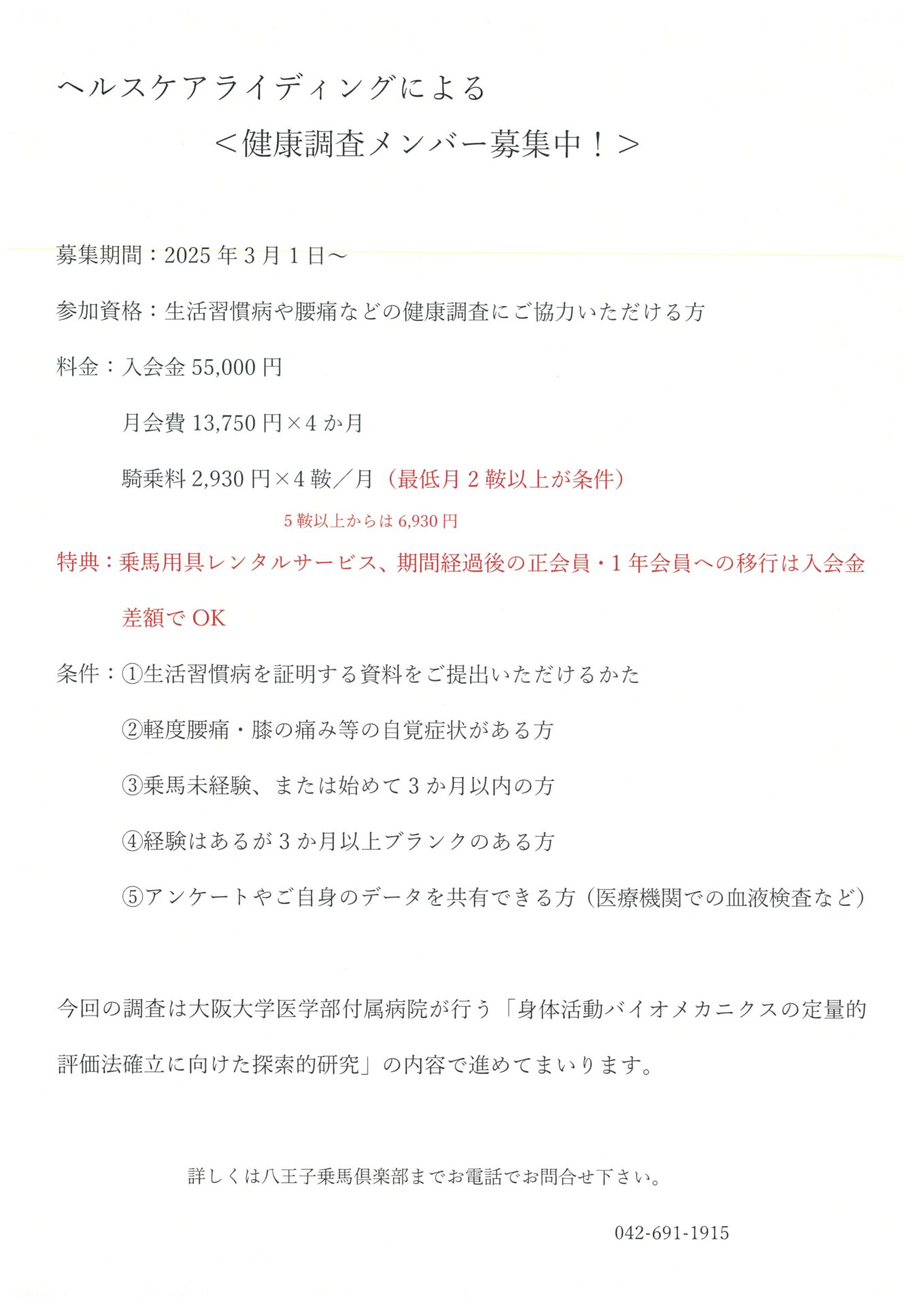 健康調査会員 募集中!健康調査にご協力で騎乗料がお安くなります!