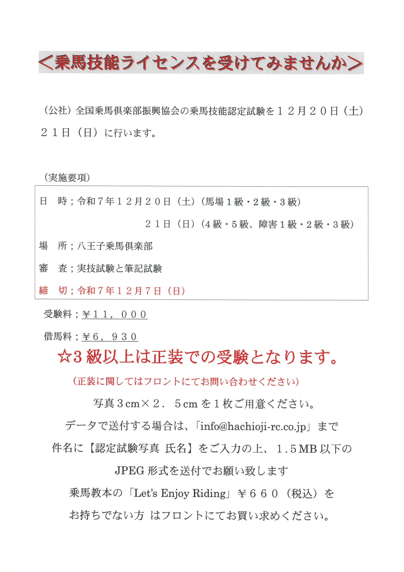 大会、認定試験のお知らせ