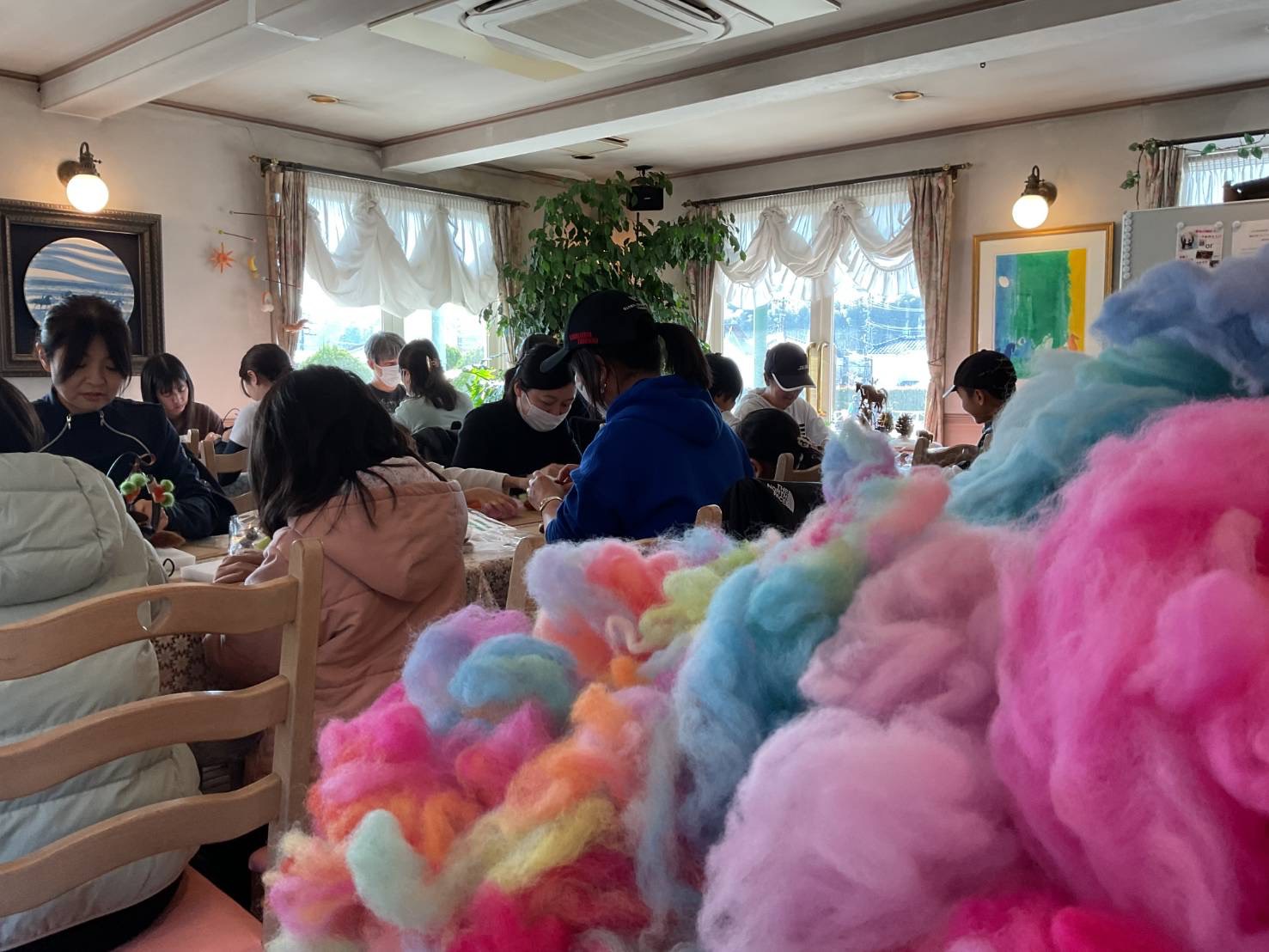 12月に入り冬らしくなってきました。 先日、行われた「羊毛フェルト、蹄鉄リースのワークショップ」は、これからの季節にぴったりなイベントでとても盛り上がりました。 初めて参加された方、ポニークラブの小さなお友達など、たくさんの方が集まってとても楽しそうでした😊 今回、2回目という方も多く慣れた手つきでニードルという針を使い羊毛にツンツンして形を整えていきます。 ……